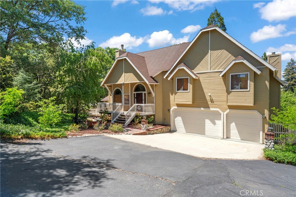 Gorgeous home with Lake Rights located in the desirable area known as the Summit! This fantastic home features a larger half acre lot, almost level entry and 3 car deep garage! Home includes 4 bed and 3 bath with an extra spacious bonus family room upstairs. Recently upgraded and pride of ownership, this home showcases light and bright accents showing off its charm, mountain warmth and appeal. The floor plan is multi level and spans three floors. Main level includes cozy living room with rock wood burning fireplace that leads to an open formal dining area. Walk though to an entertainers kitchen with smaller dining nook, SS appliances along with wood cabinets and granite countertops. The upstairs bonus area includes a fantastic family room with a warm wood burning stove which offers a great place for gatherings with 2 large sized bedrooms and a full bath. This area also shows off beautiful tree views and mountain views off the back deck! The next upstairs is the laundry room and primary master bed with full bath and oversized tub. Downstairs, you’ll find one more spacious bedroom and a separate bathroom including its own separate entrance and deck. The oversized windows and wood casings throughout the home showcase the natural beauty and stunning tree views that surround the property. This larger lot property also includes multiple decks and expands down to its own firepit and swing/slide set for the family. Home also includes secluded and private access with no through traffic. Parking is plentiful, and there’s a 3 car garage deep garage. Plenty of storage and large build up underneath. Back yard, fruit trees and shed out back. Being just minutes away from Lake Arrowhead and Twin Peaks this makes it an excellent option for both full-time and part-time living, offering access to recreational activities and amenities. Close to off road trails. Overall, this home offers a combination of modern amenities, natural beauty and larger lot makes this home an attractive option for those looking for a comfortable and beautiful property in the Lake Arrowhead area. Start making memories- move in ready for the holidays!